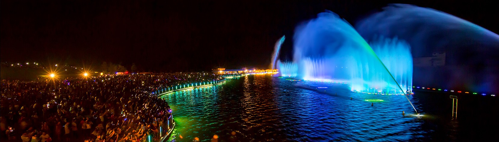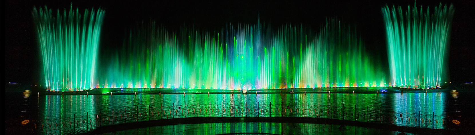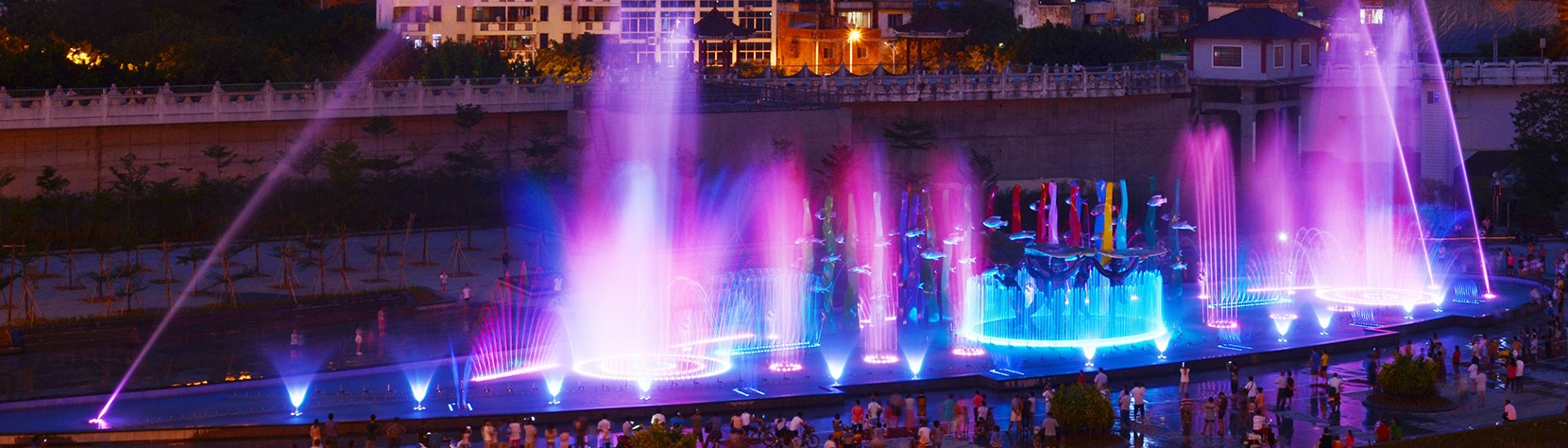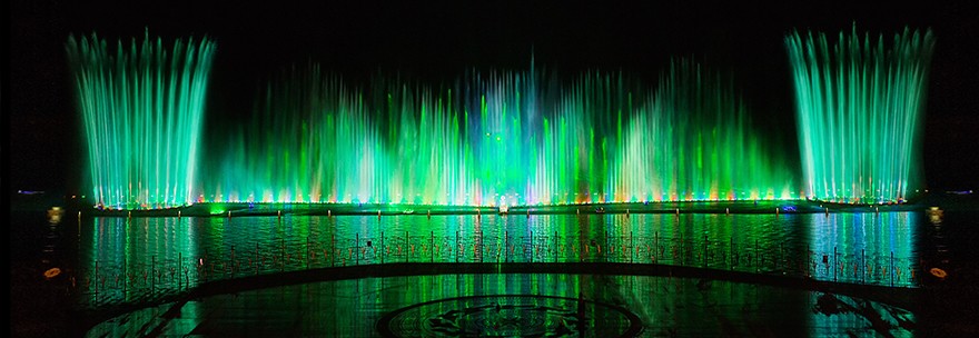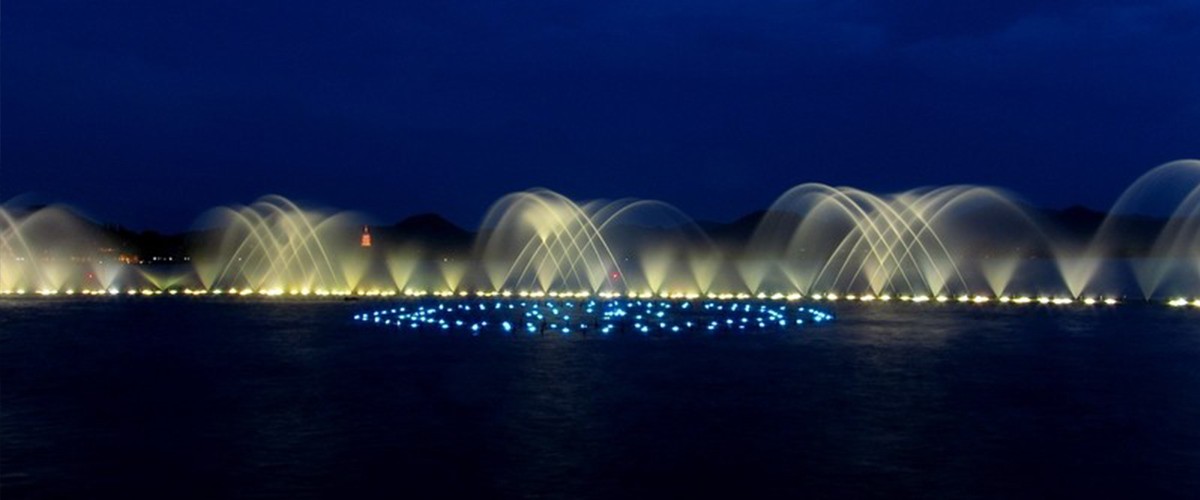 噴泉主噴高達(dá)110米,配合其他的3000多組噴頭,組成多樣的銜接,花樣可達(dá)到60分鐘不重復(fù)。噴泉的造型令人眼花繚亂,伴隨著音樂的節(jié)奏和燈光的變換,代表上林旅游特色的蓮花、銅鼓等水幕造型也出現(xiàn)在在湖面...