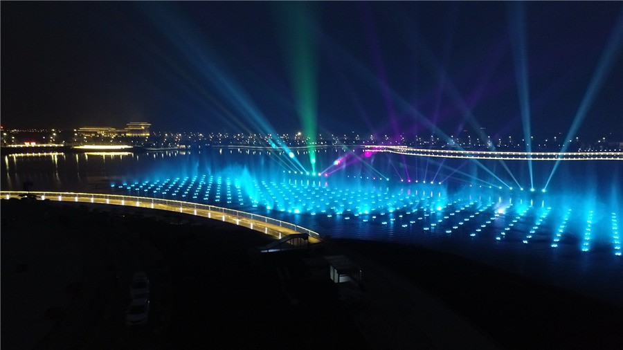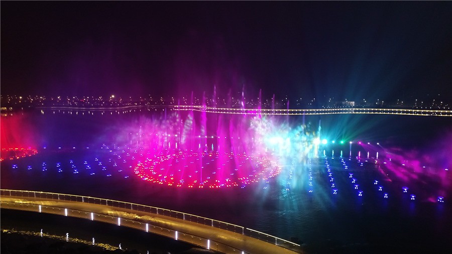 咸陽(yáng)雙照水庫(kù)水舞秀工程:位于雙照水庫(kù)內(nèi),東西長(zhǎng)度180米,南北寬度50米,水舞秀中心距圓形演藝廣場(chǎng)中心點(diǎn)133米,以整個(gè)雙照湖的水域?yàn)榛{(diào),奧體中心、市民文化中心等場(chǎng)景為輔助色,以咸陽(yáng)歷史文化和現(xiàn)代文化為魂,運(yùn)用聲光電等高科技技術(shù),打造國(guó)內(nèi)一流、西北第一的主題秀。